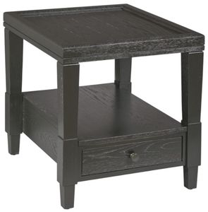 The England Furniture Oliver black rectangular end table is crafted from ebony solids and white oak veneers, finished in a striking black tone. Its rectangular silhouette complements contemporary interiors, while offering a durable and stylish surface for your living room. Ideal for pairing with the Oliver cocktail or chairside tables.Read More